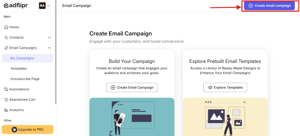 Step-1 – Go to Adflipr Email campaigns section and click on My campaigns tab.
