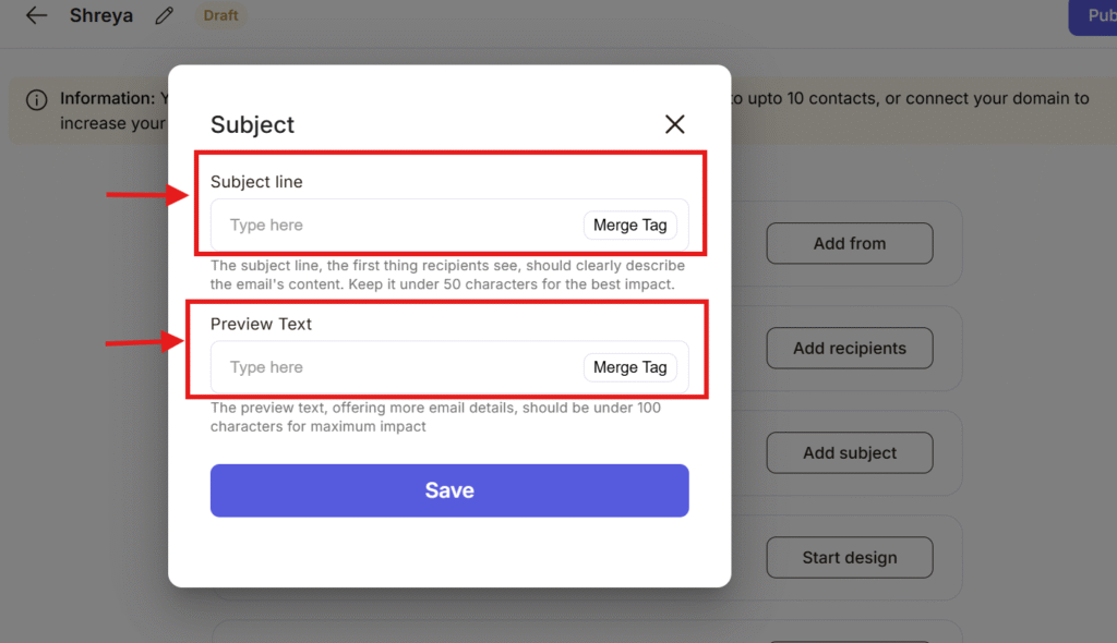 Create a subject line and preview text that grabs attention. It should be short and eye catchy. click the save button.