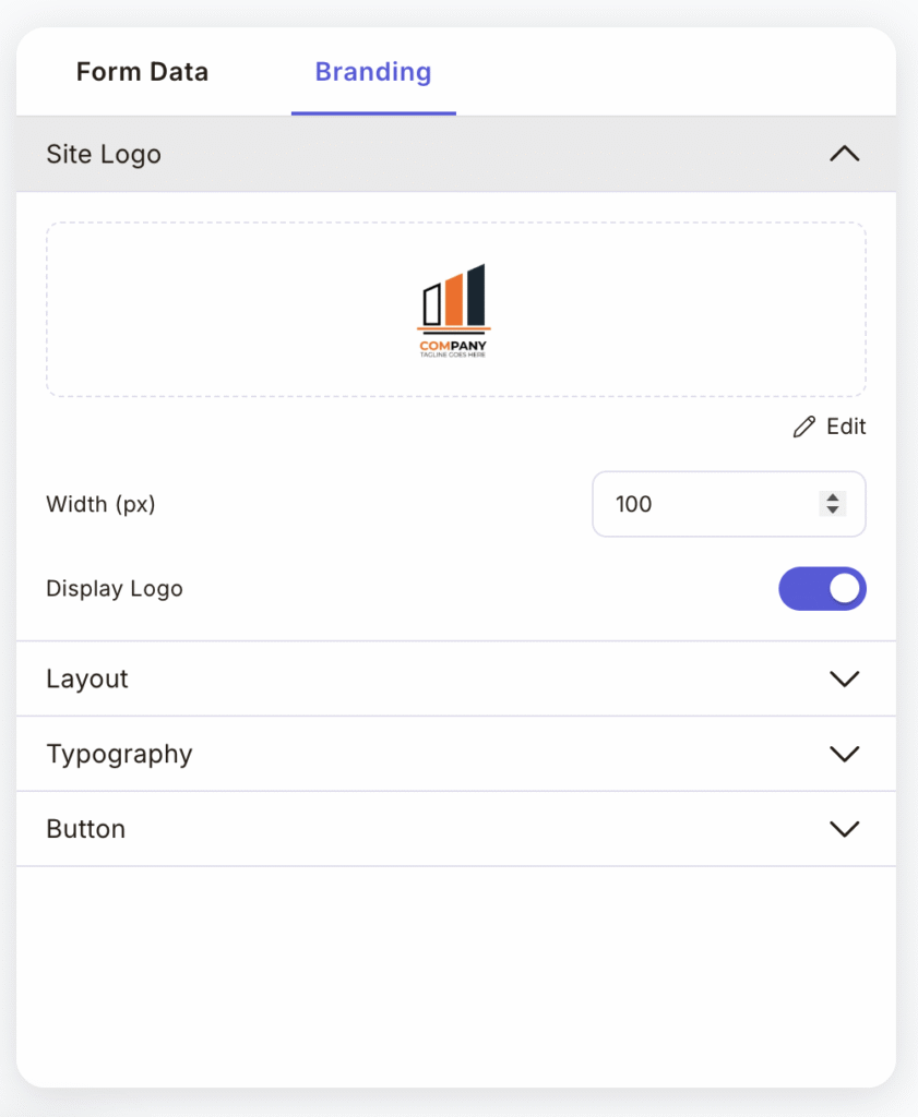 This section controls your brand logo on the form that shows the logo that is currently added. This helps you quickly see how it looks on the form.